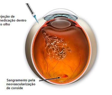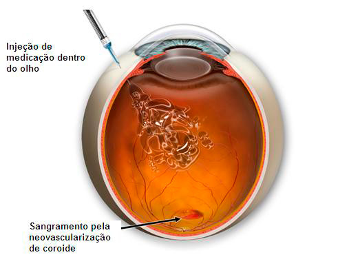 Na forma úmida da doença, em que temos a formação da um emaranhado de vasos que pode sangrar ou causar acúmulo de líquido na retina, pode ser necessária a utilização de injeções intraoculares de uma classe de medicamentos chamados de anti-angiogênicos.