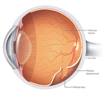 Procure atenção médica imediata se estiver apresentando sinais ou sintomas de descolamento de retina. O descolamento de retina é uma emergência médica que pode resultar em perda permanente da visão.