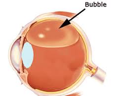 • Injeção de ar ou gás no olho: Nesse procedimento, chamado pneumorretinopexia, o cirurgião injeta uma bolha de ar ou gás na parte central do olho (a cavidade vítrea). Se posicionada corretamente, a bolha pressiona a área da retina que contém o rasgo contra a parede do olho, interrompendo o fluxo de fluido para o espaço atrás da retina. Seu médico também utiliza criopexia durante o procedimento para reparar o rompimento da retina.