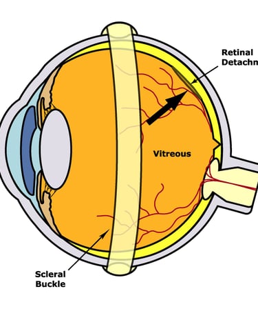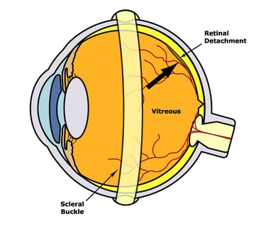 Se você tiver vários rasgos ou furos ou um descolamento extenso, seu cirurgião pode criar uma faixa escleral que circunda todo o seu olho como um cinto. A faixa é colocada de maneira a não bloquear sua visão e geralmente permanece no local de forma permanente.