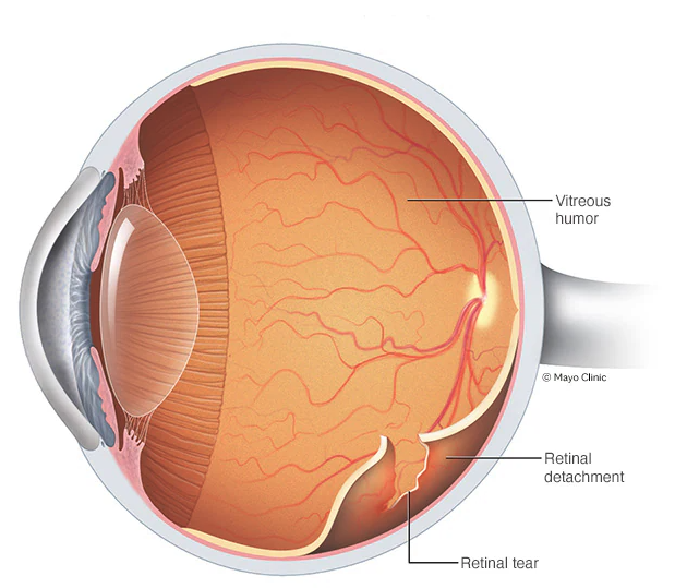 Regmatogênico: O tipo mais comum, causado por um rasgo na retina que permite o acúmulo de fluido sob a retina, levando ao seu descolamento. A causa mais comum é o envelhecimento, onde o vítreo (material gelatinoso no olho) pode encolher ou se liquefazer, puxando a retina e causando um rasgo.