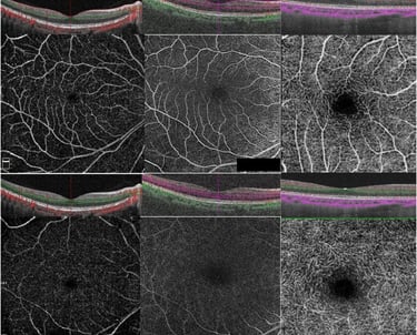 O Angio-OCT é uma variação da tomografia de coerência óptica que permite a visualização dos vasos sanguíneos da retina sem a necessidade de injeção de contraste. Este exame é utilizado para detectar e monitorar doenças vasculares da retina, como a retinopatia diabética e a degeneração macular. O Angio-OCT oferece uma visão detalhada da circulação sanguínea na retina, sendo essencial para o diagnóstico precoce e o acompanhamento dessas condições.