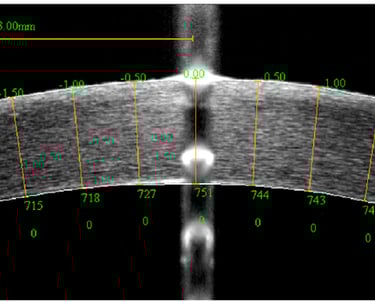 A paquimetria é um exame que mede a espessura da córnea, uma informação crucial para o diagnóstico de condições como o ceratocone e para a avaliação pré-operatória em cirurgias refrativas. O exame é rápido e indolor, realizado com um aparelho que emite uma onda ultrassônica ou luz para medir a espessura corneana com precisão. Esses dados são fundamentais para garantir a segurança e o sucesso de intervenções cirúrgicas nos olhos.