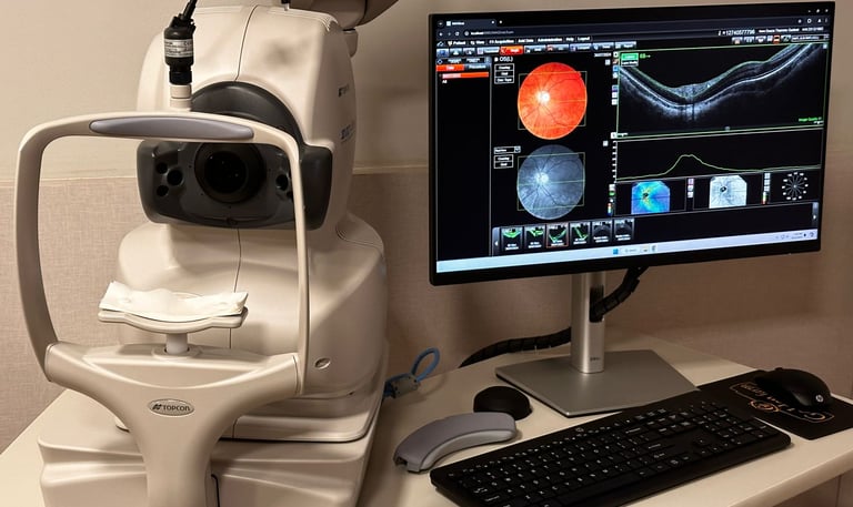 A tomografia de coerência óptica (OCT) é um exame avançado que utiliza ondas de luz para capturar imagens em alta resolução das camadas da retina e do nervo óptico. Este exame é fundamental para o diagnóstico e monitoramento de doenças como glaucoma, DMRI e outras condições retinianas. O OCT é indolor e oferece uma visão detalhada das estruturas oculares, permitindo um acompanhamento preciso da saúde ocular.